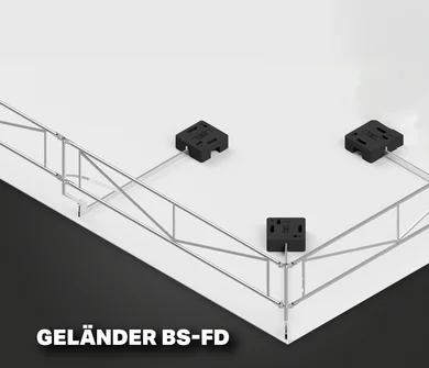 Das SKB Geländer BS-FD ist speziell für den temporären Einsatz auf Baustellen entwickelt und überzeugt durch seine schnelle Montage und Demontage. Das System ist auflastgehalten mit Kunststoffgewichten und benötigt keine Dachdurchdringung. Nach dem Einsatz lässt es sich vollständig rückbauen, ohne Spuren oder Beschädigungen an der Dachfläche zu hinterlassen.