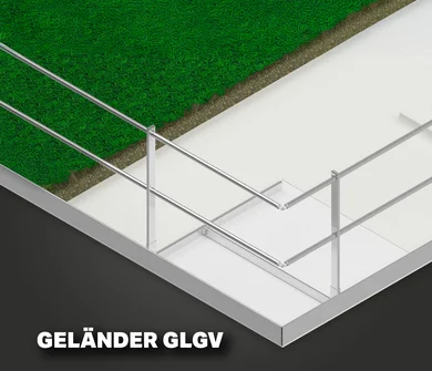 Unsere Gründachgeländer von SKB sind auflastgehaltene Systeme, die durch Kies oder Granulat ballastiert werden und somit keine Dachdurchdringung benötigen. Das Geländer GLG verfügt über einen Geländerfuß mit Aluminiumwanne, in der die Ballastierung direkt aufgebracht wird. Beim Geländer GLGV liegt der Ballast auf einem Gründachvlies, ideal für extensive Dachbegrünungen. Das Geländer GLGV-H bietet zusätzlich eine anpassbare Pfostenhöhe, um sich unterschiedlichen Aufbauhöhen und Substratschichten anzupassen.