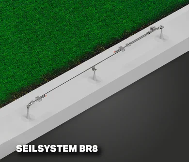 Die Seilsysteme BR 6 und BR 8 sind wahlweise überfahrbar oder nicht überfahrbar und lassen sich direkt auf den bestehenden Primo Anschlagpunkten montieren. Damit können sie problemlos nachgerüstet werden, wenn sich die Nutzung des Dachs im Laufe der Zeit ändert. Diese Systeme vereinen hohe Bewegungsfreiheit mit dauerhafter Sicherheit und sind ideal für weitläufige Gründachflächen, auf denen Flexibilität und Effizienz im Vordergrund stehen.